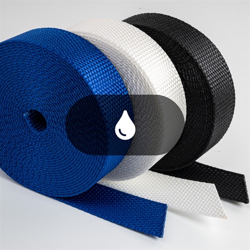 Textilier som utsätts för regn eller väta kan genomgå en behandling och blir därigenom vattenavvisande. I vårt färgeri kan vi behandla textila band med PFC-fritt vattenavvisningsmedel. (PFC=perfluorerande ämnen). Vattenavvisande material är vanligt förekommande i outdoorutrustning, exempelvis tält.